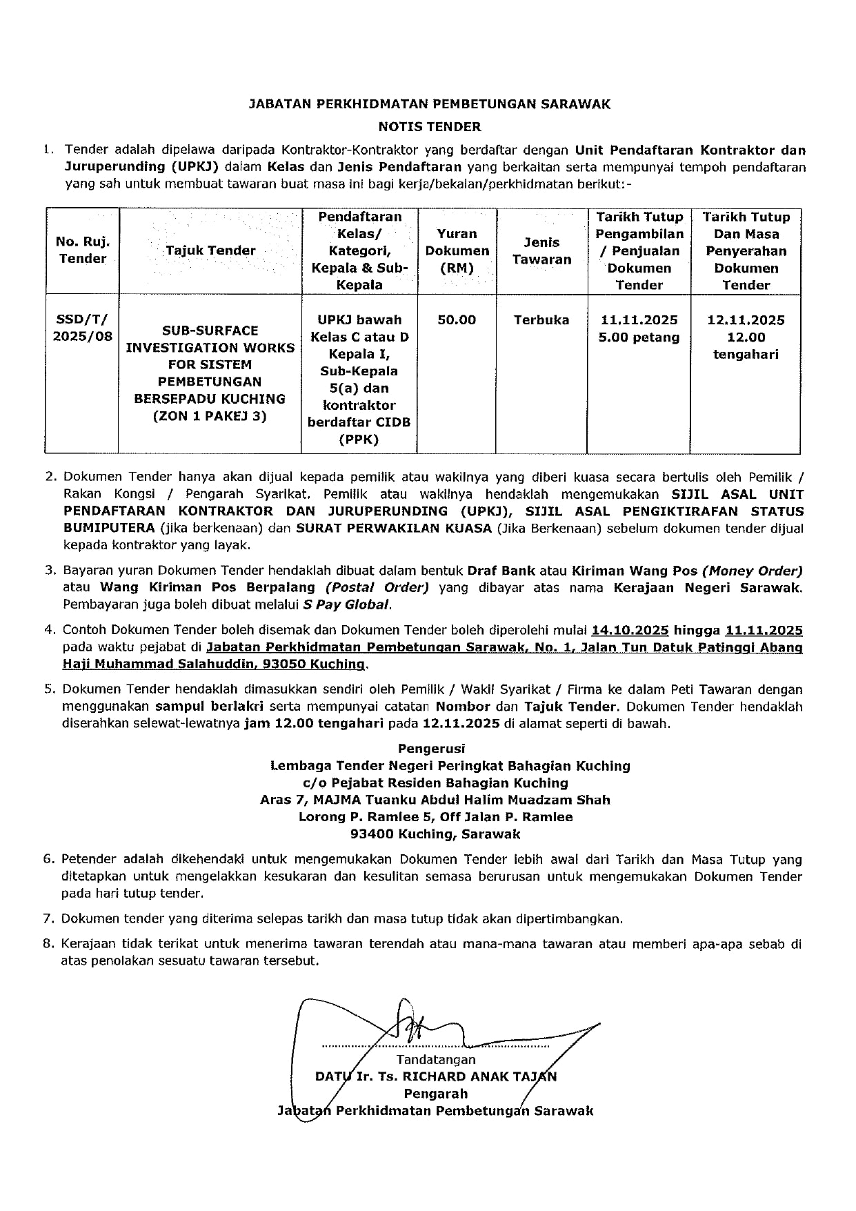 NOTICE TENDER SSD/T/2024/05, SSD/T/2024/06, SSD/T/2024/06 (Re-tender)